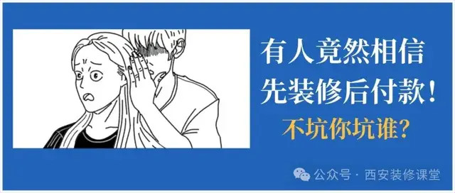 正确做法:天上不掉馅饼,装修永远是先付钱再干活,否则这一行没人去做了,现金流才是装修有人去干的原因。找好人你一把付也没事,人不找不对,干完付也得被坑死『选谁装修,关键看人!』